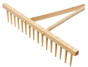 Klasické drevené hrable vyrobené na Slovensku pre hrabanie sena a trávy.