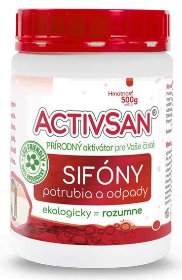 Activsan Sifón 500g je úplne prírodný a ekologický vysoko účinný biologický prípravok. Je určený k uvoľňovaniu a spriechodňovaniu upchatých a zanesených odpadových potrubí a sifónov. Pri jeho pravidelnom používaní dochádza k odstráneniu nepríjemného zápachu vychádzajúceho zo sifónov alebo odpadových systémov. Pri pravidelnom používaní prípravku Activsan Sifón 500g je ošetrovaný celý systém odpadového potrubie.