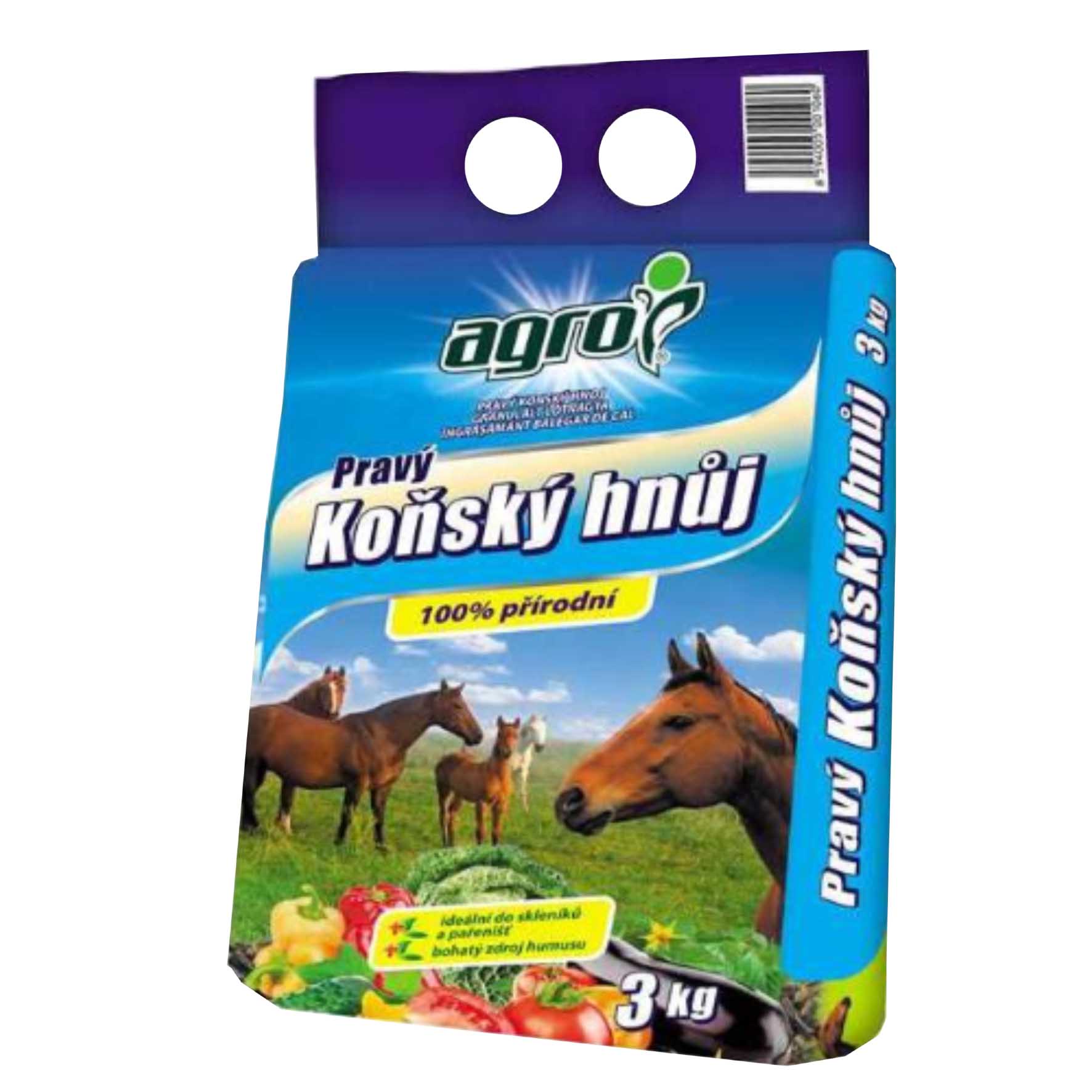 Organické ( prírodné ) hnojivo vyrobené z konského hnoja so zvýšeným obsahom podstielky procesom sušenia a následnej peletizácie. Obsahuje organické látky, základné živiny ( N, P, K, Mg, Ca ) a stopové prvky ( napr. Fe, Mn, Mo, Zn, Cu )