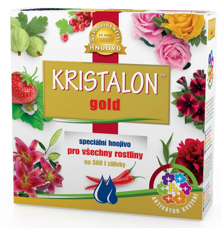 Kristalon gold je kryštalické, vo vode celkom rozpustné hnojivo. Obsahuje všetky živiny potrebné k dobrému vývinu rastlín- dusík, fosfor, a draslík. Mikroživiny- bór, molybdén, meď, železo, mangán a zinok- sú prítomné vo forme, ktorá je rastlinami ľahko prijateľná a vysoko účinná. Zaručuje dobrú kondíciu a zdravý vzhľad rastlín a kvalitné, dobre vyfarbené plody a kvety. Hnojivo je vhodné na hnojenie všetkých druhov rastlín vo Vašej záhrade- drobného ovocia, zeleniny a okrasných rastlín.
