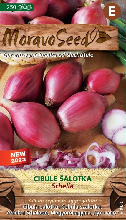 Cibuľa šalotka ‚Schelia‘ je poloranná, vysokoúrodná jarná odroda s červenofialovou šupkou, ideálna na priamy výsev od marca do apríla. Vyznačuje sa jemnou, sladšou chuťou, hmotnosťou cibuliek a výbornou skladovateľnosťou. Vyžaduje slnečné stanovište a priepustnú pôdu, pričom vegetačná doba trvá 120-150 dní.