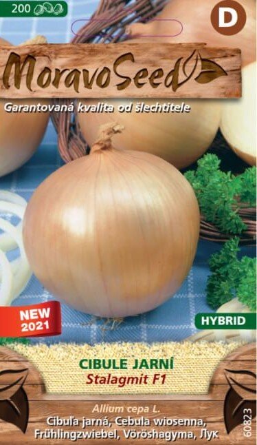 Jarná cibuľa STALAGMIT F1 je veľmi výnosná, vytvára plody s hmotnosťou 160g. Je vhodná na stredne dlhé skladovanie. Ide o skorý až poloskorý hybrid amerického typu, ktorý sa vysádza v období marec – apríl. Vegetačná dobou od výsevu trvá 110 – 115 dní.