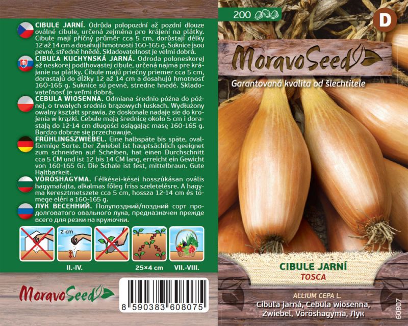Odroda poloneskorej až neskorej podlhovastej cibule určená najmä pre krájanie na plátky. Cibule majú priečny priemer cca 5 cm dorastajú do dĺžky 12 až 14 cm a dosahujú hmotnosť 160 – 165 g. Suknice sú pevné, stredne hnedé. Veľmi dobre sa skladuje. Vegetačná doba trvá 130 – 135 dní.