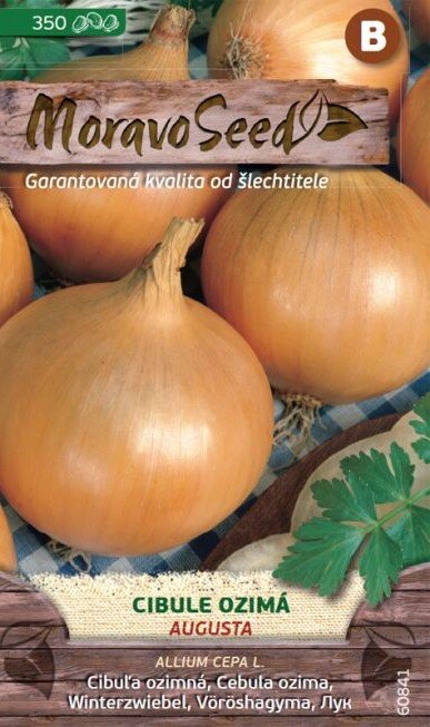 Cibuľa ozimná AUGUSTA patrí medzi skoré odrody určené k prezimovaniu na poli z augustových výsevov. Môžete ju zbierať s vňaťou, sušiť alebo priamo konzumovať. Cibuľa má žltú šupku a chutnú dužinu. Dorastá do hmotnosti 110g.