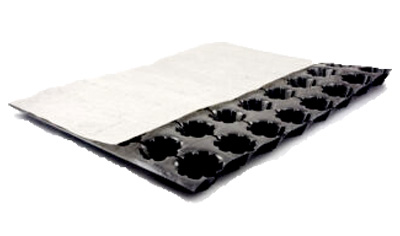 Drenážna nopová akumulačná rohož, HDPE, rozmer 2x10m=20m2 s geotextíliou 100g/m2, výška 2 cm, vodná kapacita – retencia 7litrov/ m2,tlakové zaťaženie 285kN / m2.