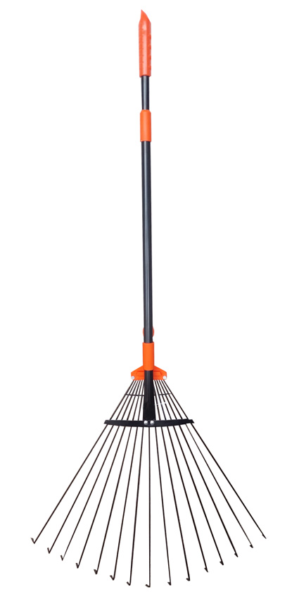 Hrable R114, 15 lamelové, vejárové, na lístie, nastaviteľné, s násadou, výška 80/163cm šírka 20/60cm