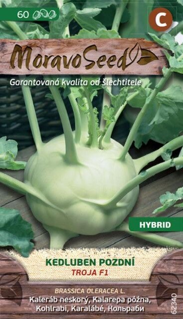 Poloneskorý kaleráb TROJA F1 má veľmi jemnú, chutnú dužinu a buľvu, ktorá narastá do veľkosti 18cm. Pokiaľ ho budete pravidelne a rovnomerne zavlažovať, postará sa o skutočne bohatú úrodu. Je vhodný k jarnému a letnému pestovaniu, odolný proti drevnateniu a prerastaniu bulvičiek. Vegetačná doba od výsadby je 90 – 100 dní.