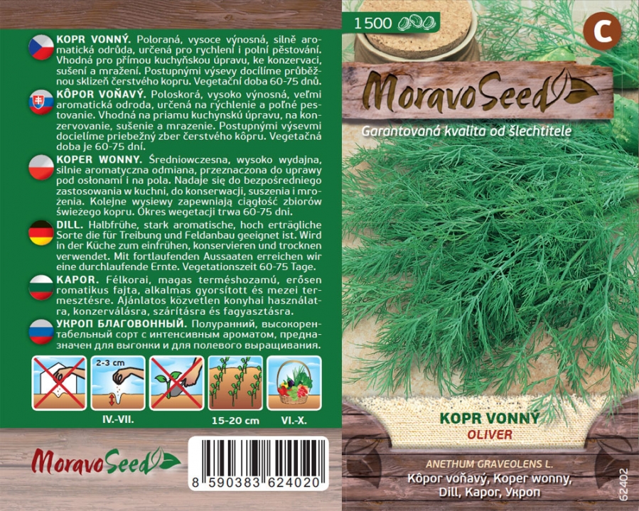 Poloskorá, vysoko výnosná, veľmi aromatická odroda, určená na rýchlenie a poľné pestovanie. Vhodná na priamu kuchynskú úpravu, na konzervovanie, sušenie a mrazenie. Postupnými výsevmi docielíme priebežný zber čerstvého kôpru. Vegetačná doba je 60-75 dní.