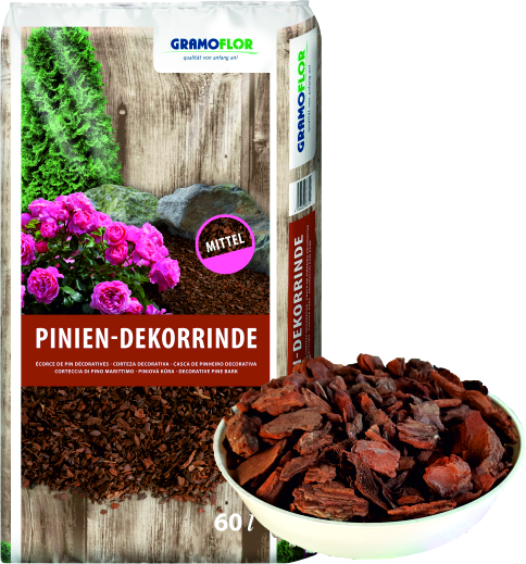 Exkluzívna nádherná dekoračná kôra z pínií (borovice),stredné triedenie 15-25mm, vydrží 4 krát dlhšie ako mix smreková. Použite ju ako vrchnú 2-3cm vrstvu ( na podklad zo smrekovej kôry horšej kvality, alebo na tkanú či netkanú textíliu) alebo ako samostatnú 4 – 6 cm vrstvu.