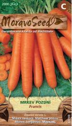Korene neskorej mrkvy FRANCIS dorastajú do dĺžky 25cm, sú dobre skladovateľné a výrazne oranžové. Zaraďujeme ju medzi typ Flakee (odroda s veľmi dlhým, kužeľovitým koreňom).