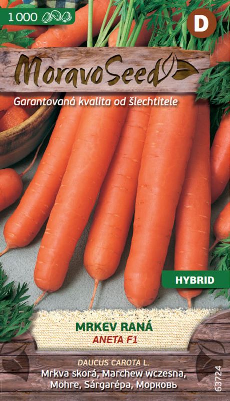 Mrkva ANETA F1 dorastá do dĺžky 20cm a je odolná voči zeleneniu koreňa. Skorú mrkvu len veľmi zriedkavo napadá vŕtavka mrkvová čo patrí medzi jej veľké výhody. Odrodu môžete pestovať zo skorých jarných výsevov a ako následnú plodinu z výsevov do polovice júla. Keď si cez slnečné dni pochutnáte aspoň na jednej mrkve každý deň, vaša pokožka po opaľovaní bude tmavnúť rýchlejšie. Zapríčiňuje to betakarotén, ktorý je rozpustný v tukoch a tak si vždy spolu s mrkvou doprajte trošku oleja.