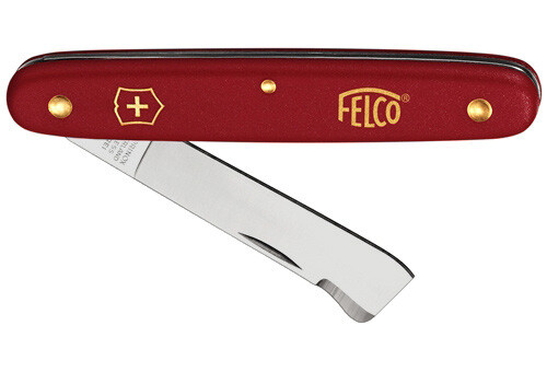 Nôž očkovací na ruže s rovným ostrím a úpravou na prizdvihnutie kôry. Je to kombinácia očkovacieho FELCO 3.9040 a vrúbĺovacieho FELCO 3.9050 ). Červená nylonová rukoväť so štandardnou vložkou. Oceľové ostrie 57 mm. Najpredávanejší.