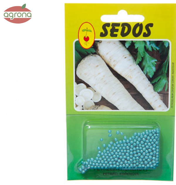 Obaľované osivo petržlenu koreňového, kalibrácia 2,5-3 mm. Je určené na pestovanie petržlenu koreňového z priameho výsevu. Umožňuje presný výsev ručný aj sejačkami, čím výrazne znižuje potrebu osiva a vylučuje jednotenie porastu.