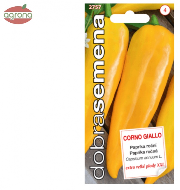 CORNO Giallo ─ sesterská odroda CORNO Rosso s veľkými plodmi žltej farby a vysokým výnosom. Je vhodná do skleníkov aj na poľné pestovanie. Na klíčenie je dôležitá stabilná teplota 20 ─ 24 ° C. Najlepšie sa jej darí na výhrevnej, slnečnej lokalite.