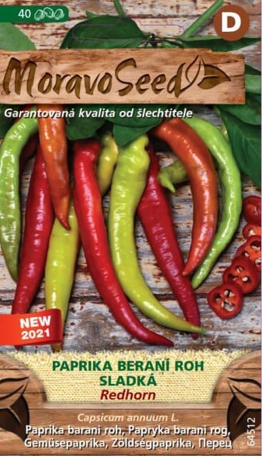 Skorá odroda baranieho rohu sladkej chuti REDHORN, určená na studené rýchlenie a poľné pestovanie (v teplých oblastiach). Rastliny sú stredne veľké, s vysokou násadou 2 komorových plodov, ktorých farba je svetlozelená v technickej zrelosti a sýto červená v botanickej zrelosti. Bohatá odroda je vhodná na konzervovanie celých plodov.