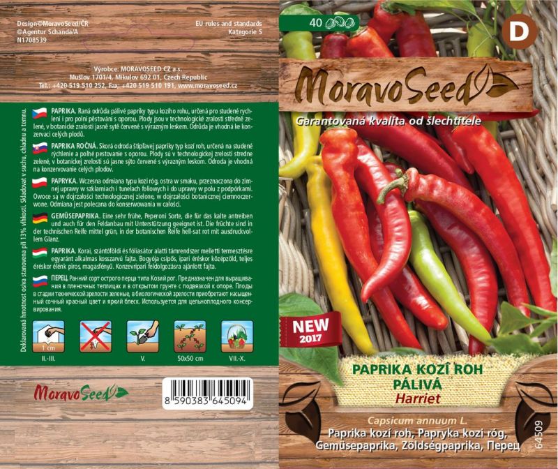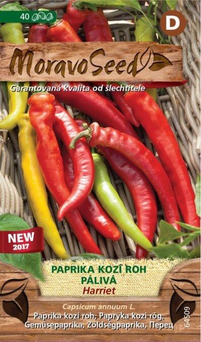 Pálivá paprika HARRIET (kozí roh) je určená na konzervovanie celých plodov. Plody sú hladké, dlhé, majú trojuholníkový tvar a predovšetkým štipľavú chuť. Obsah kapsaicínu v jednej paprike je 10-30 000 jednotiek SHU (na Scovilleho stupnici). Na porovnanie paprička habanero má pálivosť 300 000 SHU. Plody kozieho rohu HARRIET sú v technologickej zrelosti zelené, sú bohaté na kyselinu listovú a vitamín krásy nazývaný vitamín E. V botanickej zrelosti sú lesklé, sýto červené a bohaté na vitamín C.