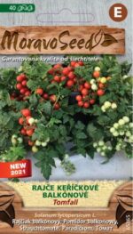Skorá odroda červenej kríčkovej paradajky TOMFALL, určené na pestovanie v nádobách (objem nádoby cca. 30L). Plody sú príjemne sladké, malé (10 – 15g), guľaté a odolné voči chorobám. Rajčiny môžete pestovať taktiež vo voľnej pôde, v takom prípade však nezabudnite na použitie mulčovacej netkanej textílie. Z jednej rastliny získate až 300 chutných a veľmi zdravých plodov, ktoré nepraskajú ani neopadávajú.