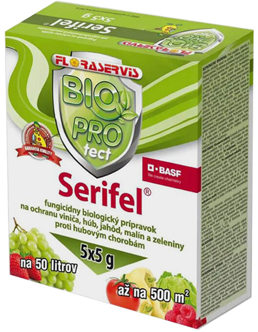 Serifel je biologický fungicídny prípravok s účinnou látkou Bacillus amyloliquefaciens kmeň M81, ktorý po kontakte s patogénom narúša hubové vlákna.