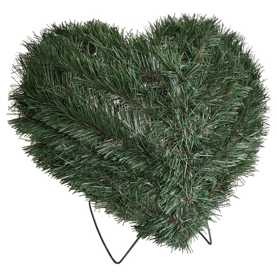 Srdce z umelej čečiny na drôtenom stojane na výrobu smútočných vencov. Rozmer 37 cm.