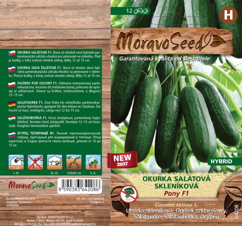 Skorá až stredne skorá odroda uhorky šalátovej PONY F1 tvorí zelené plody s veľkosťou do 15cm. Vďaka tomuto parenokarpickému hybridu je možné pestovanie uhoriek aj bez opelenia. Rastlina je určená na pestovanie v skleníku. Osivo je ošetrené účinnou látkou Captan