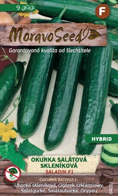 Uhorka šalátová SALADIN F1 je určená na pestovanie v skleníkoch alebo fóliovníkoch. Dorastá do dĺžky 35cm a je neuveriteľne plodná. Počas teplých letných dní môžete očakávať aj dve zrelé uhorky denne. Plody majú tmavozelenú farbu, sú štíhle a úplne hladké. Jej veľkou výhodou je znášanlivosť voči teplotným výkyvom.